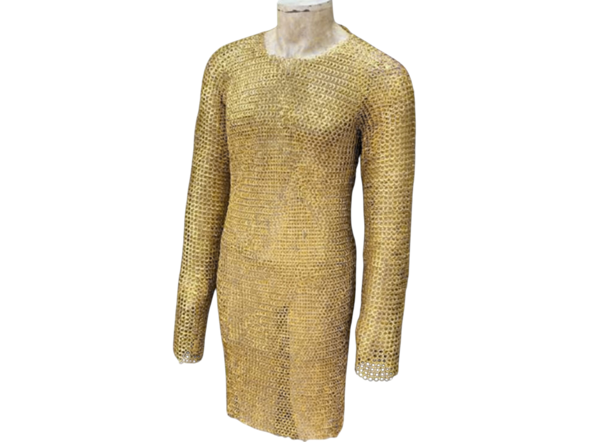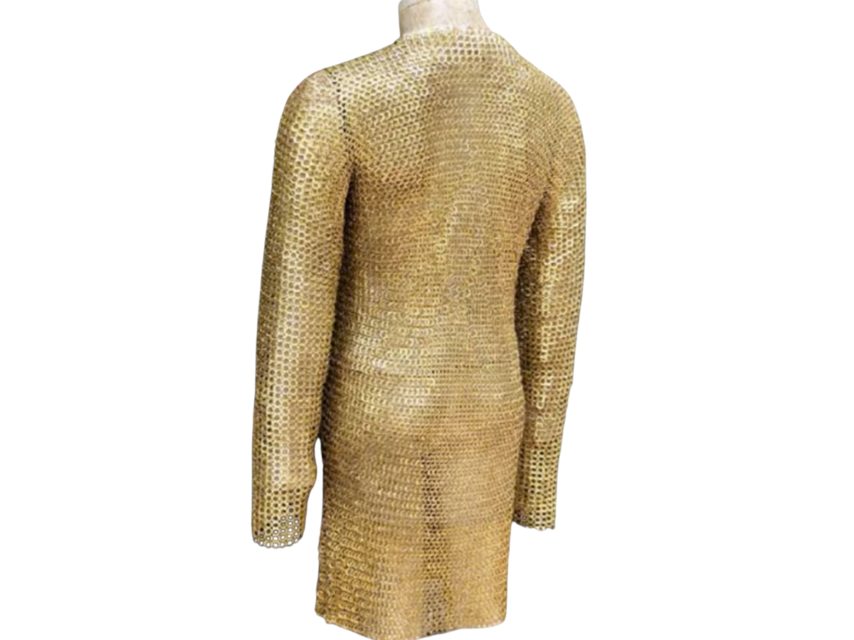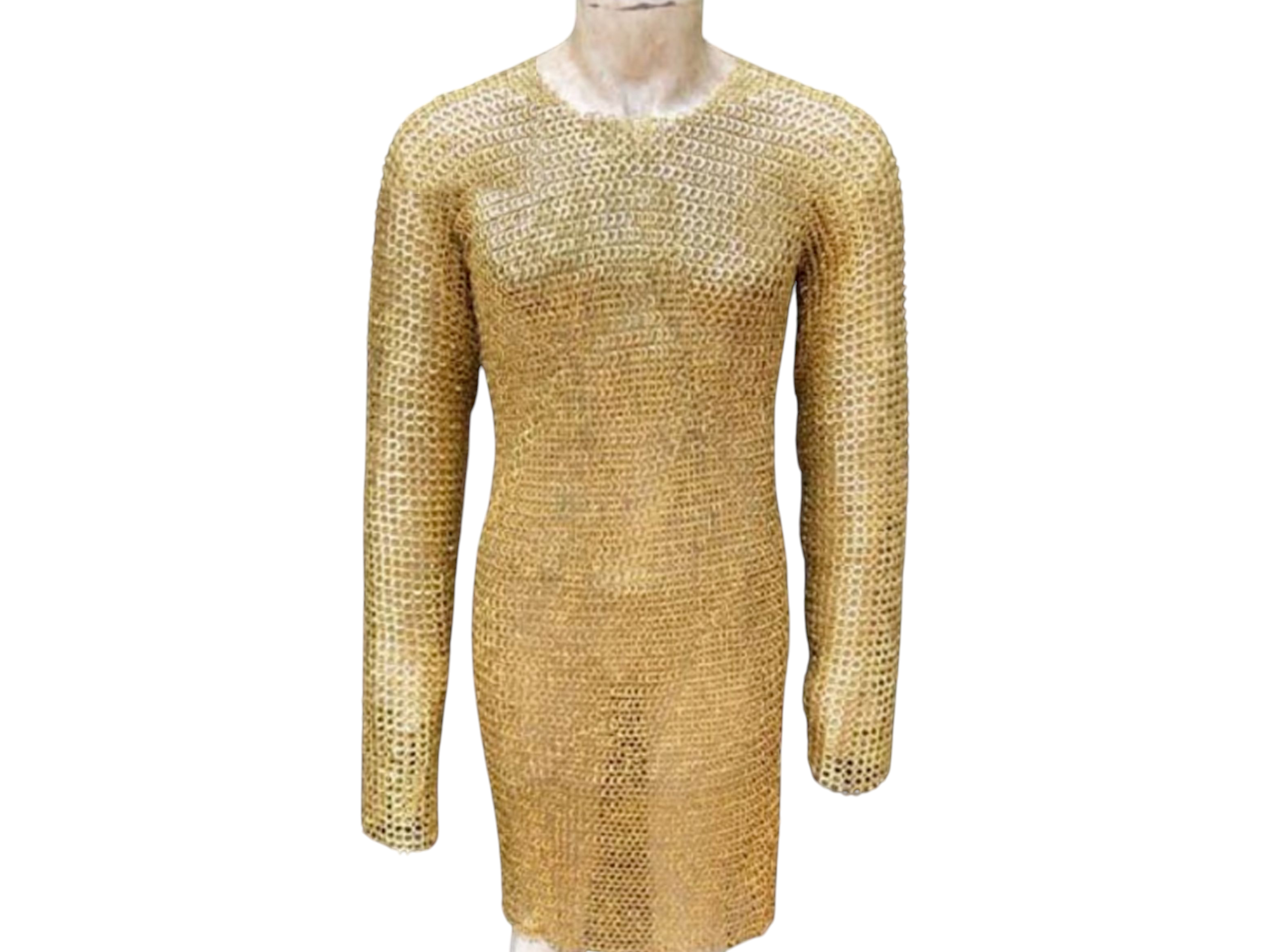 Explore the timeless appeal of brass chainmail and bring a piece of medieval history into your world. Order now to add this exquisite armor to your collection.